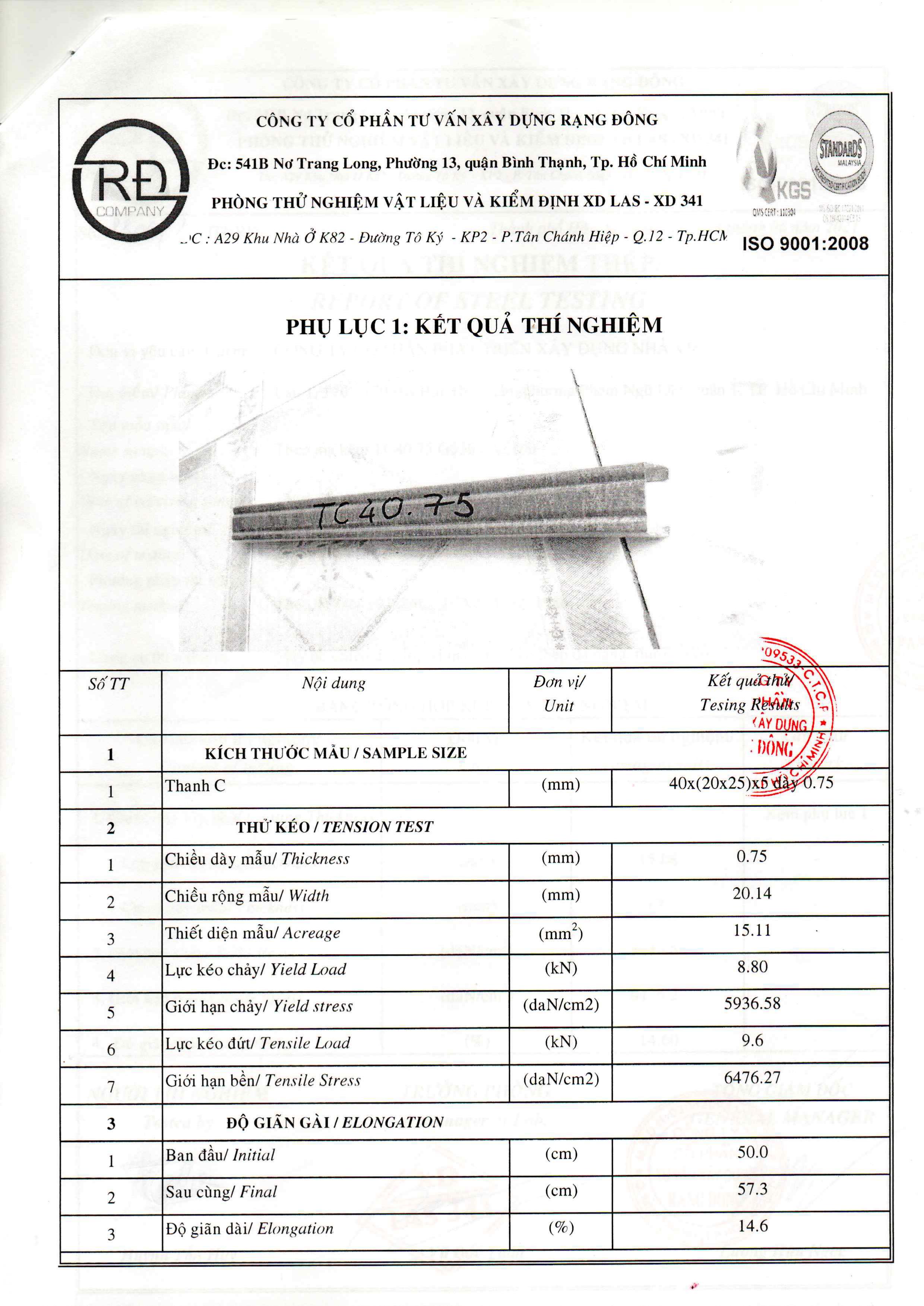 Kiểm định độc lập thanh thép mạ nhôm kẽm TC40.75 Steeltruss