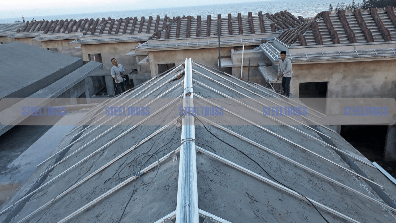 Thép mạ hợp kim nhôm kẽm Steeltruss với thanh TC40.75 dùng làm cầu phong cho mái bê tông. Giúp khắc phục nhược điểm cho mái bê tông hay co ngót gây nứt, vỡ, rớt ngói gây mất thẩm mỹ Thanh cầu phong TC40.75 của Steeltruss khắc phục hoàn toàn những nhược điểm đó, đêm đến cho mái bê tông vẻ đẹp hoàn hảo và an toàn nhất