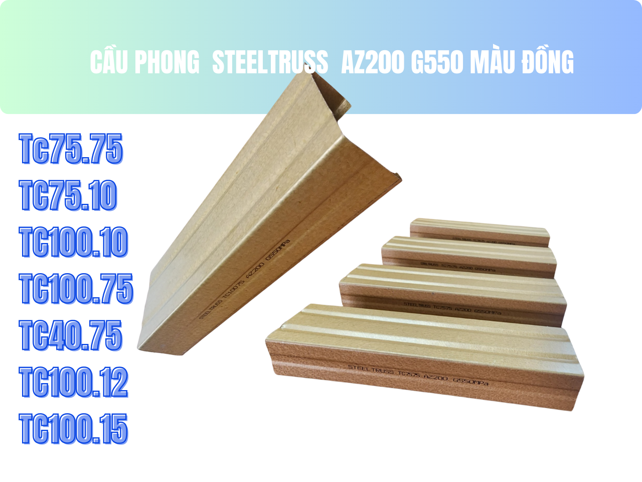 3. Thép mạ hợp kim STEELTRUSS® màu đồng AZ200 ( độ mạ tối thiểu 200gram trên một cm2 ) G550 (giới hạn tối thiểu 550kg/cm2).