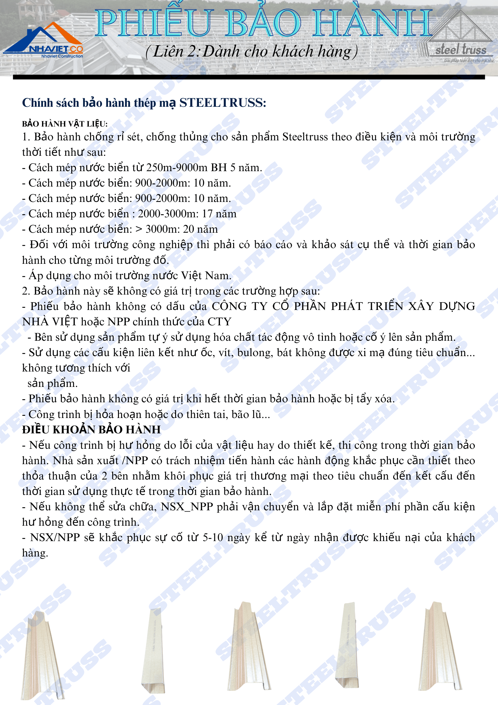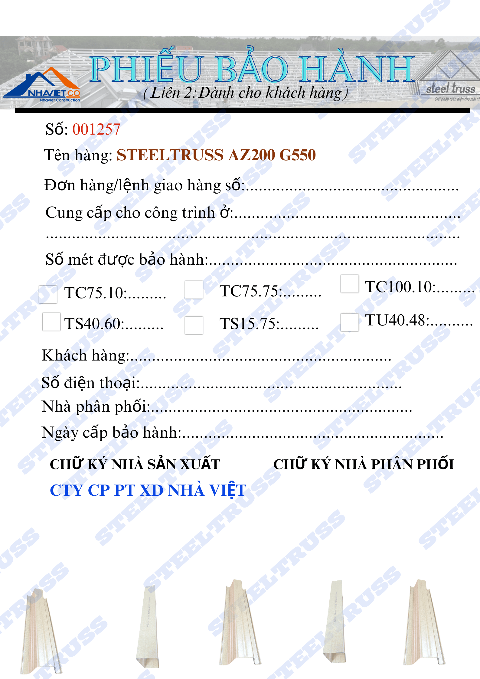 √ Bền vững theo thời gian: Thép nhẹ STEELTRUSS® (thép cường độ cao G550) với sức bền vật liệu đã được Australia nghiên cứu, chứng minh và công bố là 50 năm. NHÀ VIỆT cấp phiếu bảo hành lớp mạ 20 năm nhờ cơ chế hoạt động, với mác thép có cường độ chảy tối thiểu là 550 Mpa, đầy đủ giấy tờ kiểm định COCQ, Kiểm định test cho mỗi lô hàng trước khi xuất xưởng đưa ra công trình sử dụng, vì vậy, luôn đảm bảo an toàn sử dụng tuyệt đối.