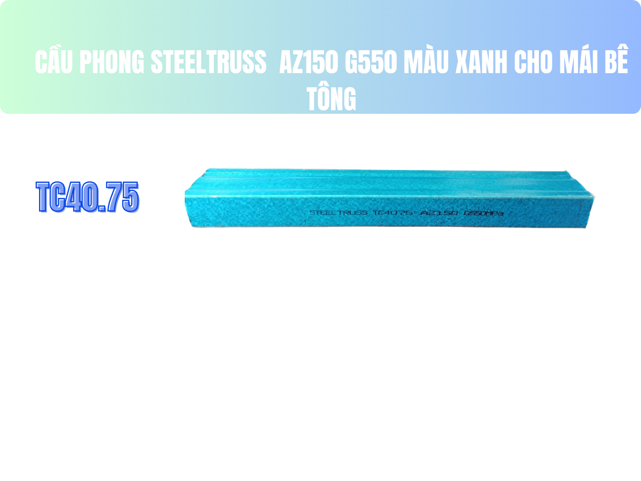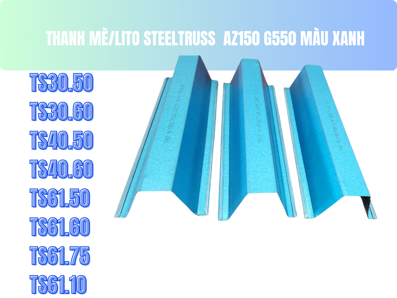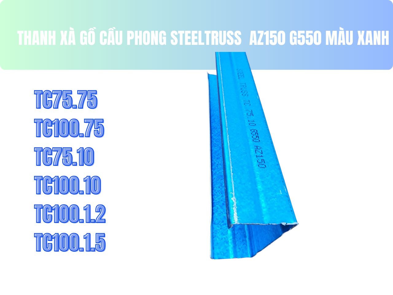 2. Thép mạ hợp kim STEELTRUSS® màu xanh AZ150 ( độ mạ tối thiểu 150gram trên một cm2 ) G550 (giới hạn tối thiểu 550kg/cm2).