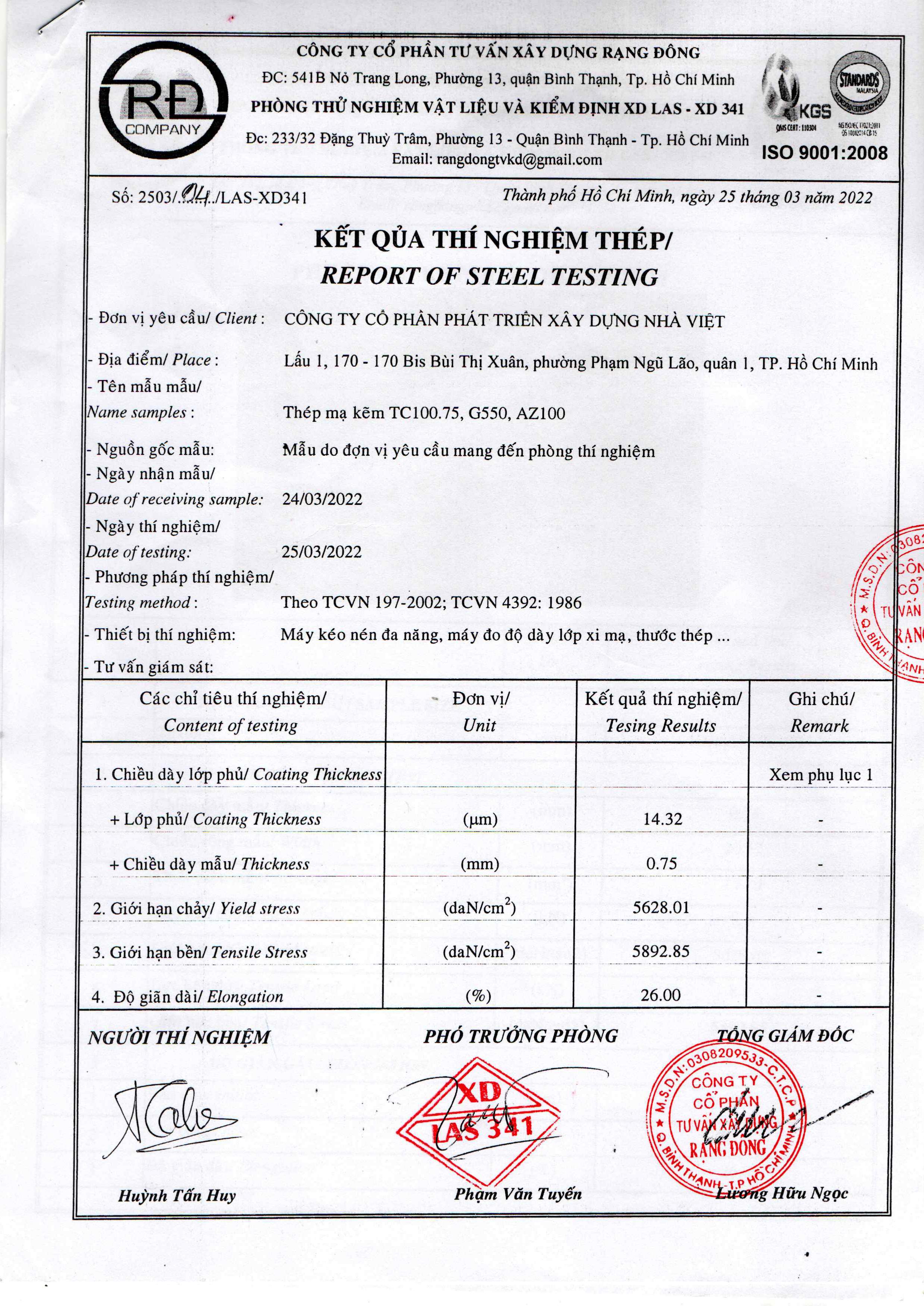 √ Bền vững theo thời gian: Thép nhẹ STEELTRUSS® (thép cường độ cao G550) với sức bền vật liệu đã được Australia nghiên cứu, chứng minh và công bố là 50 năm. NHÀ VIỆT cấp phiếu bảo hành lớp mạ 20 năm nhờ cơ chế hoạt động, với mác thép có cường độ chảy tối thiểu là 550 Mpa, đầy đủ giấy tờ kiểm định COCQ, Kiểm định test cho mỗi lô hàng trước khi xuất xưởng đưa ra công trình sử dụng, vì vậy, luôn đảm bảo an toàn sử dụng tuyệt đối.
