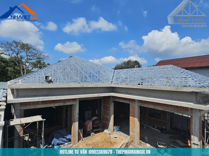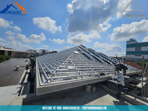 Liên kết toàn bộ bằng vít tự khoan, bulong, bát cố định, không hàn xì tại công trình, không gây cháy nổ gây mất an toàn tại công trình.